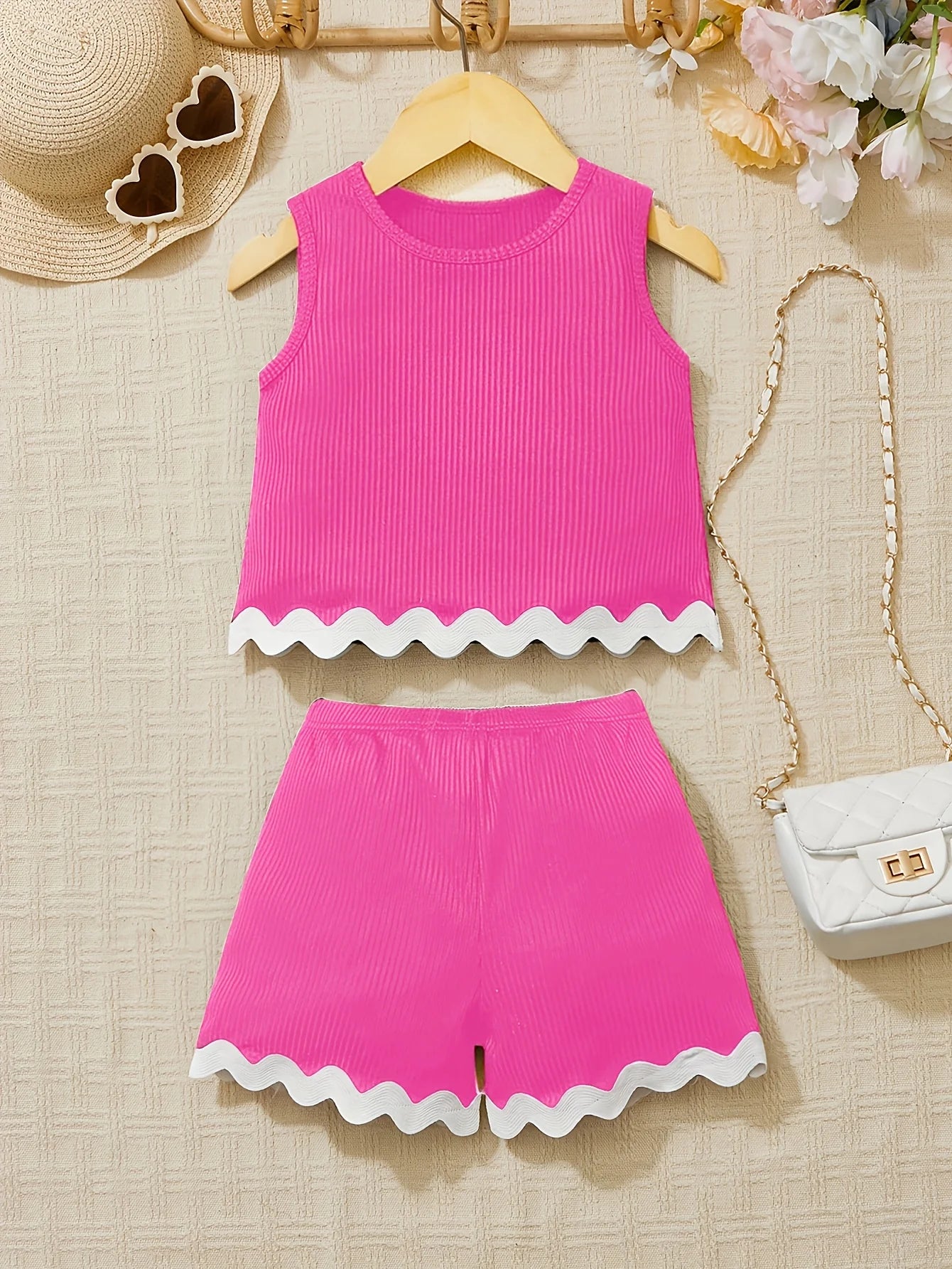 Descubre este adorable conjunto de verano perfecto para las vacaciones y días soleados. Este conjunto de dos piezas incluye un elegante chaleco de encaje en color sólido y pantalones cortos a juego, ideal para que tu pequeña luzca fresca, cómoda y con estilo durante la temporada de calor.