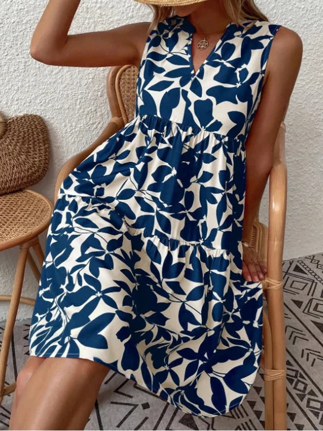 Discover the perfect combination of elegance and comfort with this beautiful bohemian floral sleeveless dress. Featuring a V-neck design and delicate ruffles, this loose-fitting plus-size dress is ideal for beach parties, casual events, or any special occasion where you want to look fresh, elegant, and comfortable all day long.