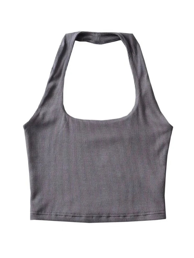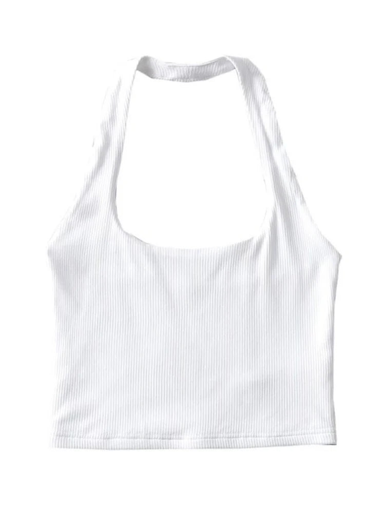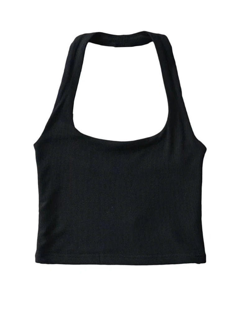Top Corto Sexy con Cuello Halter Doble - Sin Mangas